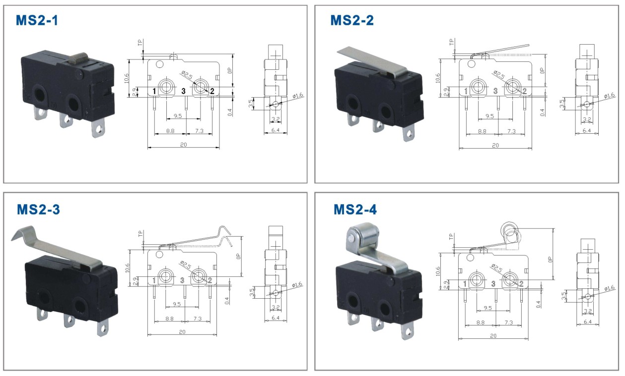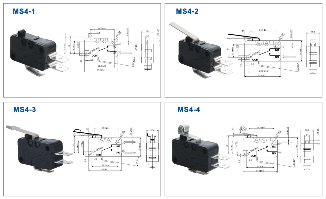 Multiple Actuator Types Plunger, roller, lever, spring, or rotary arm options