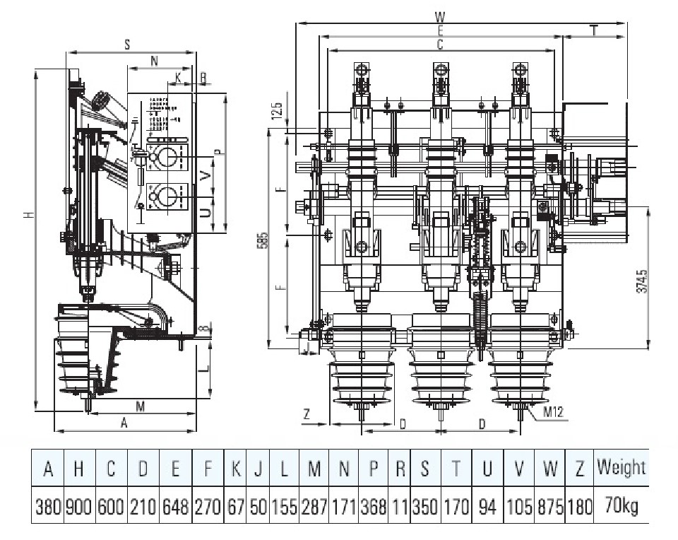 The MFKN7-12 load switch is a three-phase autogas load switch that provides switching on and off under load (without damage) of sections of a three-phase alternating current circuit, with earthed or isolated neutral, in emergency conditions.