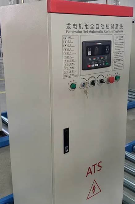 ATS dual power distribution box system indoor installation is installed against wall, repaired in front of the screen.