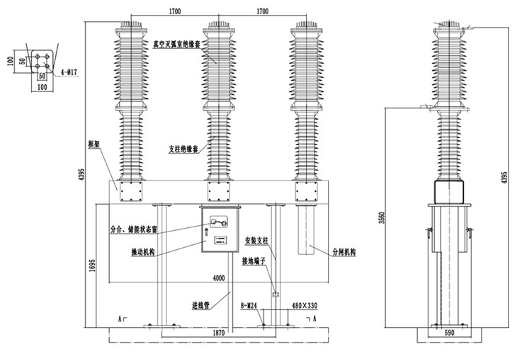 The circuit breaker has solid-state poles with silicone isolation. The poles use specially designed vacuum chambers for this switch. The spring drive provides the ability to manually turn on and off the switch. Placing the drive control cabinet on the side of the switch housing provides convenient and safe access to it.
