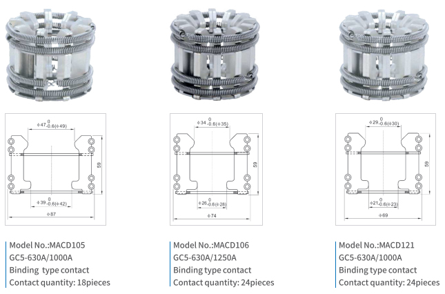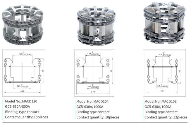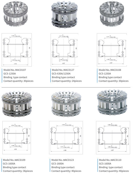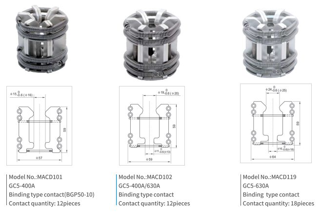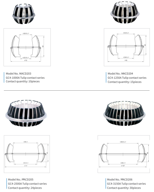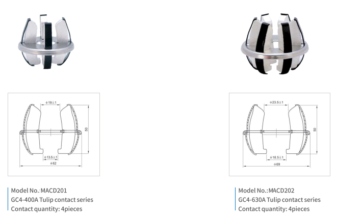 Plug-in contacts (tulips) are movable lamella contacts. They used in various circuit breakers, providing reliable contact with current-carrying part. Such contacts are easy to use. The devices shall be designed to protect against contact.