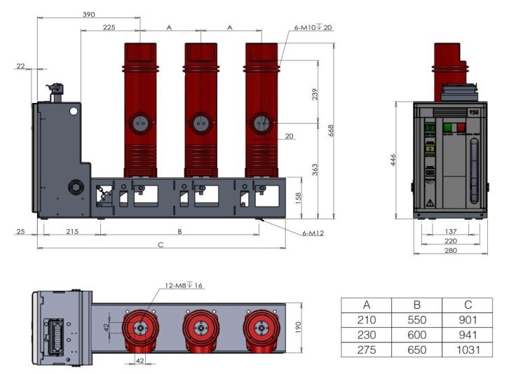 Design features, overall and connecting dimensions of the circuit breakers make it possible to install them in the chambers of prefabricated one-way service (CSR) with the arrangement of switching equipment transverse to the busbars.